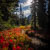 At the junction with the Kachess Ridge Trail we turned south. Treen was in her element. She loped easily ahead, turning back to look at us periodically. We left the trees behind and made our way through meadows surrounded by rock towers. The berries were past, but Treen checked every one of the fire-red bushes as we passed by. Although I was supposed to be the star of the video, the guys seemed far more interested in Treen. Not surprisingly, I also took more pictures of her than the rest of us combined.