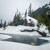 The snow on the road was never more than a few feet deep and mostly firm. "Mostly" is the key word. Every so often we'd punch through for an extra bit of excitement. By the time we arrived at the trailhead we'd already had a ton of fun. But don't forget, this is spring in the Pacific Northwest so there was more than just snow to cause trouble.
