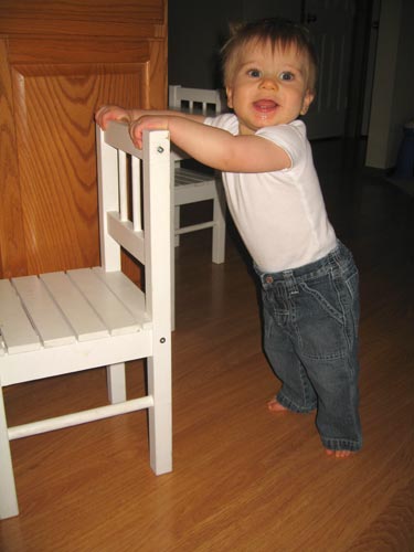 Henry doesn't seem interested in any of the toys that we've provided for him, but one of the chairs is a great push-toy.