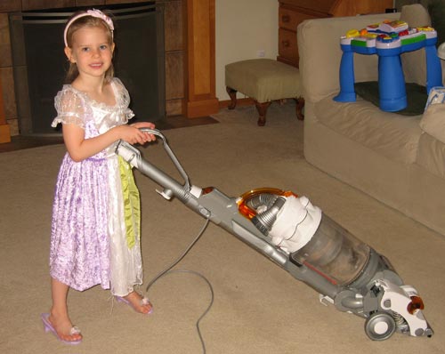 Yes, there are Craigslist ads asking for this, but no, we didn't put her up to being Princess Vacuum.
