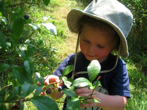 Lilly searches for ripe blueberries at a farm in North Bend. The bushes were full of big plump berries so it was easy work even if it was freakishly hot.