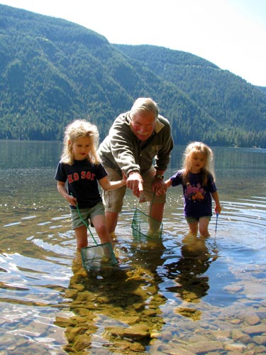 Grandpa Jack took us (me and all the kids) to Calligan Lake up in the Hancock properties to go "fishing." It was our most successful fishing trip even if we never touched a rod. Clara described our catch as "five baby fish and a mommy fish." It might have been more accurate to say we got six cutthroat trout fry.