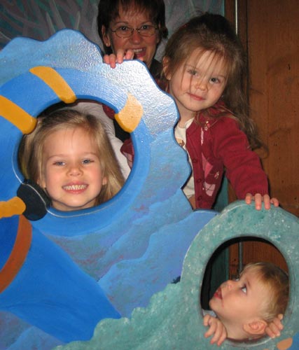 Lilly gets a boost from Nana since she doesn't have a hole to look through. The kids got a trip to the aquarium while Amy and I got time to work around the house.