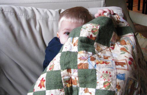 Henry's been under the weather a bit lately, but that just meant he was extra cuddly. Except when he didn't want to be. Then he hid under a quilt.