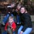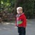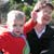 Clara and Henry shield their faces from the sun at the beginning of their visit to the zoo.