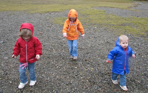 Clara, Lilly, and Henry fight the wind and cold to get to the shore of Rattlesnake Lake with the clouds threatening snow (or at least a really thick rain). We threw a few rocks and quickly retreated to the comfort of the back of the truck for snacks.