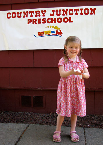 Lilly celebrates her first graduation from preschool. Next year she'll be going three days a week to prep for Kindergarten. (You gotta start early when you set your sights high.)