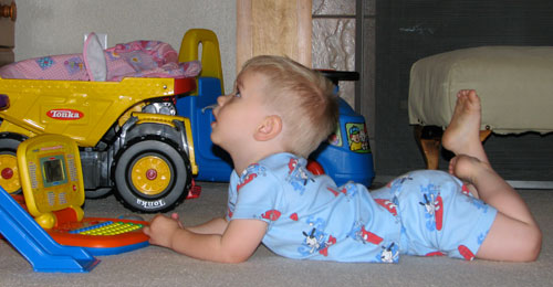 Henry simultaneously works on the little computer (actually Lilly's, but all three kids fight over it) while watching the Mariners game. I wonder where he learned how to do that...