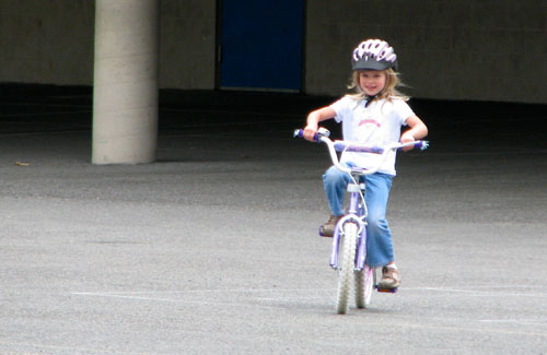 Clara has just about mastered the riding-on-two-wheels thing. Except when she ran into that pole. Hey, that's what helmets are for, right?
