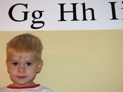 Who knew Amy's wicked paint job in the girls' room would be so educational? Henry is now able to pick out "his" letter. I'm going to circle the living room with Perl code. Maybe they'll be hackers when they grow up.
