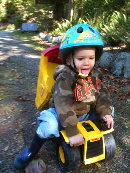 Henry loves trucks all of a sudden. Inside he crashes them into each other. Outside he rides them and then... crashes them into each other. It's a good thing he can't drive for at least a few more years.