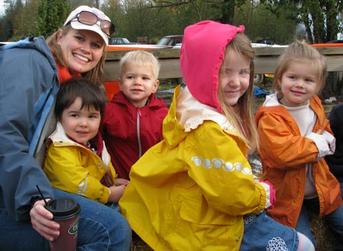 Jenn was off helping birth a baby so Amy had not only Lilly and Henry at the preschool pumpkin patch, but Isabella and Ethan, too. Everybody's smiling because she's the super mom.