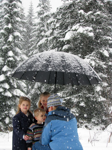 Amy preps the kids for the first (and hopefully only) Christmas card photo shoot. Heavy snow made it hard to shoot (thanks auto-focus!), but with a little Photoshop work we got a winner.