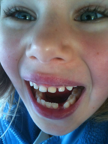 Clara shows off the newest hole in her mouth. She's got a few more that are loose, too. The Tooth Fairy may need to get a second mortgage to keep up...