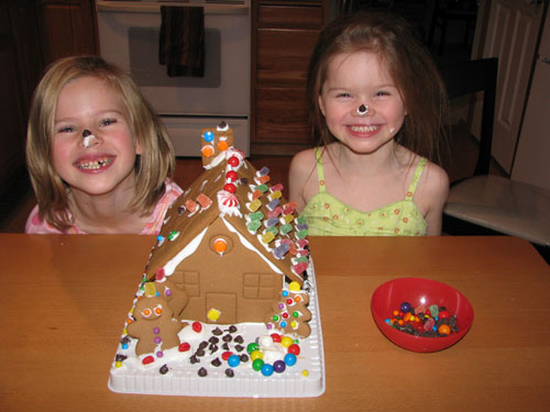 Clara and Lilly didn't stop at decorating the gingerbread house, but when they came after me I drew the line.