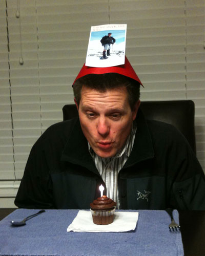 Cupcakes with fire are a new birthday tradition around our place. The hat was a leftover from the night before. (Dang, I look old.)