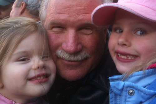 The girls frame Grandpa Jack at the first game of the season. At the rate the Mariners are going it doesn't seem like it'll be hard to get tickets.