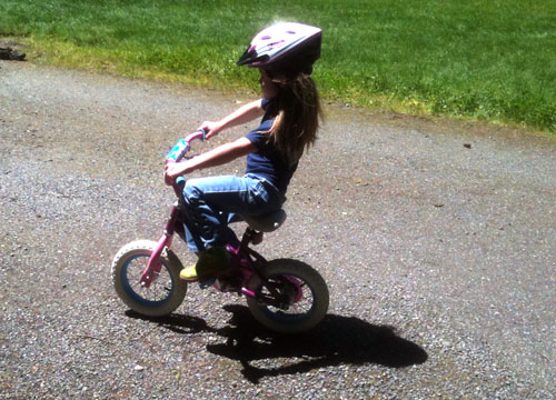 In just a few hours Lilly went from completely relying on her extra wheels to racing up and down the driveway. Maybe Henry will be on his bike by the end of the summer, too.