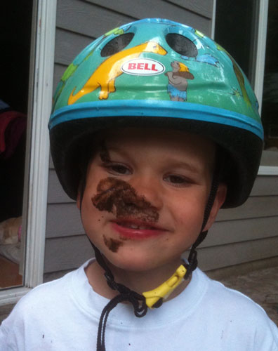 That poor boy just can't stay on his feet. It's no wonder he's often wearing his helmet even when he's not on his bike, huh?