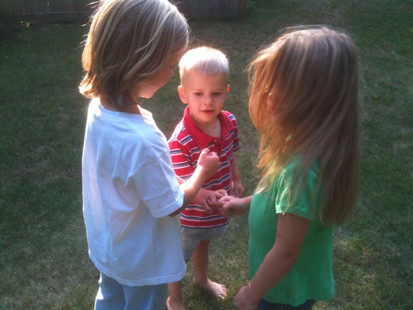 The kids play one-potato-two-potato-three-potato-you're-it on a sunny evening in the yard. Somehow it always ended on Henry.