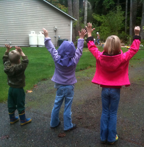 The kids wait in eager anticipation for the next section of a big tree to drop in front of our neighbor's house. The neighborhood was rattled for hours as dangerous trees were disposed of with only sore muscles to show for it.