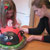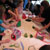 Amy and Lilly work on the grass around the ladybug cake.