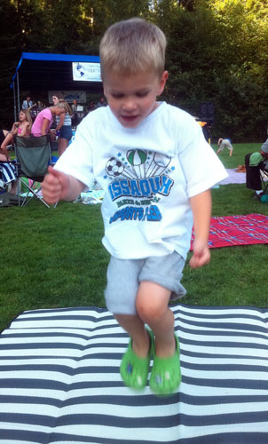 Give him a break. He's cursed with my dancing genes.