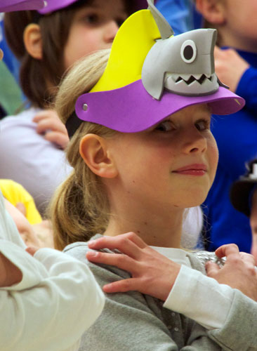 You'd be scared, too, if you were surrounded by a bunch of eight year old sharks performing for their families. The only thing worse would be eight year old lawyer sharks.