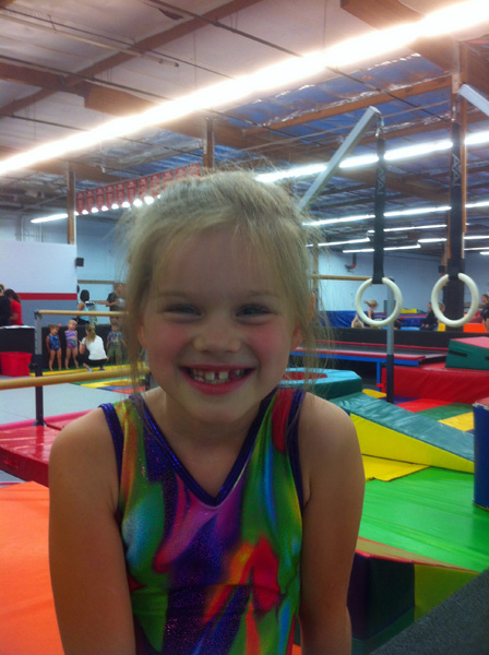 Lilly could have done ballet (like Clara) or Tae Kwon Do (like Henry), but she chose to be like herself and try something new. Enter gymnastics. Based on her smile, I think she likes it.