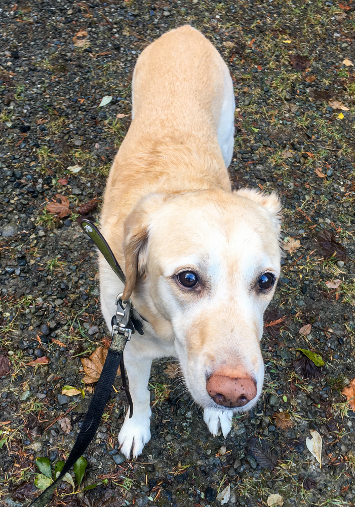 Just five days after our last hike up the home trail and the snow's gone replaced with a bunch of big mud holes. (Truth be told, Treen kind of enjoyed the mud.)