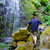 We dropped about 500 feet over a mile. It was warm, but not terrible. The waterfalls were gorgeous and the salmonberries were close to ripe. It looked like it would be possible to sneak behind the water for one of the falls so I looked around to see who would be foolish enough to do it for the cameras. The others were looking at me.