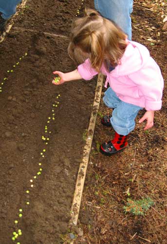 Lilly (and Clara) helped me plant peas in an experiment to see if we can grow anything other than berries, ferns, and moss in the shadow of the mountains. It'll be a long few weeks as the girls ask every few hours if their peas have grown yet.