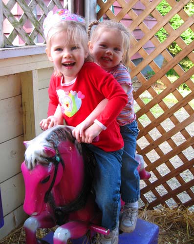Clara and Lilly weren't too sure about the real ponies at Chloe's birthday party, but they were all about the mechanical variety. Perhaps it was because this particular ride didn't actually work and just sort of tilted back and forth as they shifted their weight.
