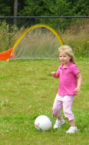 Clara shows off some mad futbol skills at her Little Kickers soccer class. It's only an hour a week, but dang if she doesn't have the feet of PelÈ! (Thanks to Michelle for the pic.)
