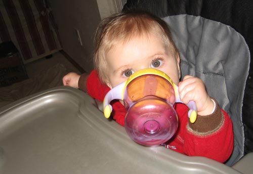 Henry is learning all about feeding himself. First it was Cheerios. Now he's flirting with drinking all by himself. What's next? Cutting his own meat?