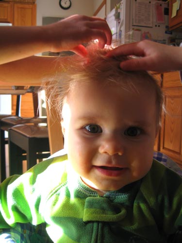 Clara and Lilly decided Henry's look was a little tired so they made use of their mad hair styling skills to update it. We drew the line when they asked for pretties.