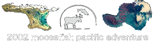 In February, 2002, we had enough and decided to head to the tropics. (Actually, we had planned this far in advance. After all, how can you just up and head on vacation without a bit of planning?) The plan was for John to accompany his father, aunt, and uncle to Kiritimati Island for a week of flyfishing. At the end of the week, John would fly back to Honolulu, say goodbye to his fishing partners, meet up with Amy, and fly to Maui for a week in Kihei. To answer your first question, Kiritimati Island (pronounced "Christmas Island") is the easternmost populated island in the Republic of Kiribati (pronounced "keer-ih-bahss"). It sits between one and two degrees north latitude, about 90 miles from the equator.