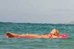 We tried snorkeling a bit, but the clouds covered the sun and the wind chilled us to the bone. The fish were neat, though. Oh well, by the time we had left Ukumehame Beach the sun had come out for a few minutes by the pool. We did see a few humpbacks doing tricks in Ma'alaea Bay. Then dinner at "Margarita's" which turned out to be a Mexican restaurant with cheap lobster. What more could you ask for? The next day dawned overcast so we went shopping. We started at Starbucks (where else?), but then headed to a swimsuit shop. I know you're all fantasizing about me in a speedo, but sorry to disappoint, I was quite content in my shorts. Amy, however, needed a bikini to fit her beachy lifestyle. We were looking for blue, but came out of the store with a red so bright if it were a sportscar the owner would never be able to afford insurance. (That's really red.) We found a lovely pink blowup raft which seemed to hold a bit of air and at $1.95 it was cheaper than another frappacino so soon we were floating in the ocean off the beach. Unfortunately, the wind nearly drowned me so I retreated to the beach where the wind again tried to kill me, though this time with sand. It took Amy's genius to realize there would be no sand at the pool, but still plenty of sun. Well, duh. It was short-lived, though, since it was soon time to prepare for the luau. Holy cow, it's the most touristic of all events, but quite entertaining. The best part was the open bar. Ha, I kid I kid. The bar was lovely, but really the best part was the opening comic from Fiji. He had a sort of deadpan delivery reminiscent of Steven Wright, but a tad less depressing. You might think I was odd if I didn't mention the hula dancers, so is that enough? You happy now? Thanks. The fire dancer guy was pretty cool though. Or hot, actually, since he kept putting the torch to himself. I guess I could see how his feet could be able to take it, but his tongue? I can't even deal with half a star at the Indian bistro, this guy is my hero.