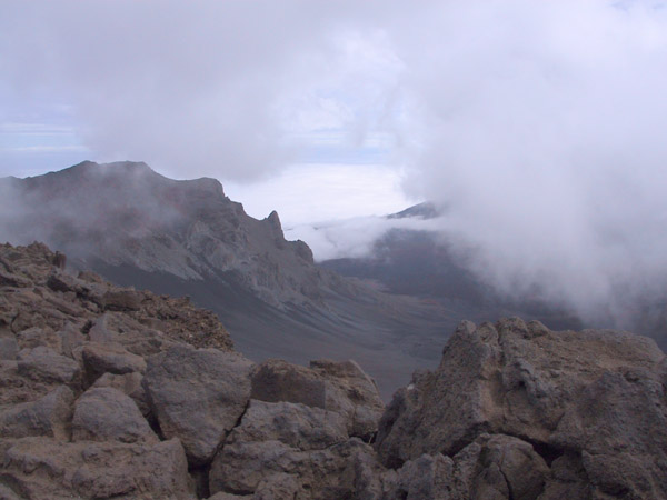The crater of Haleakala was partially obscured by clouds, but the light breeze moved it around enough for at least one picture.