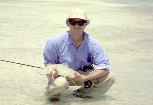 John poses with the biggest fish he caught on the trip near Cat's Island. This was early in the trip as evidenced by the small amount of tape on John's hands. (Blisters from casting.)