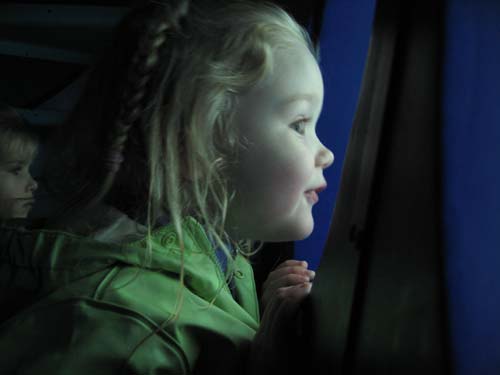 Molly watches Nemo's world slide past the window of our sub.
