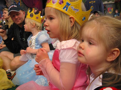 Lilly, Clara, and Molly sit before Princess Aurora as the tale of Sleeping Beauty is recounted. < previous | next >