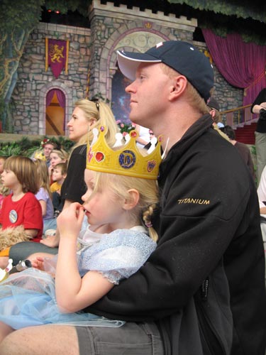 Martin and Molly listen to Sleeping Beauty's story in the Princess Faire courtyard. < previous | next >