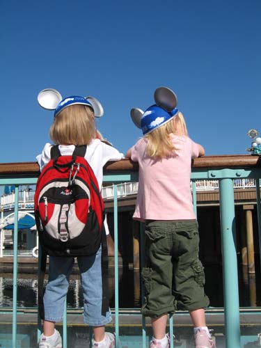 Clara and Molly peer over the rail with their Dream ears marking them as special. < previous | next >