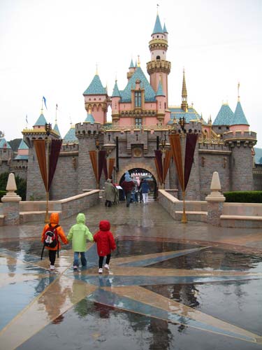 Clara, Molly, and Lilly walk through the gates of Sleeping Beauty's castle and into Fantasyland. < previous | next >