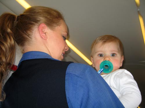 The stewardess fell in love with Henry. Had the door not been locked I think he might have gotten a tour of the cockpit. < previous | next >