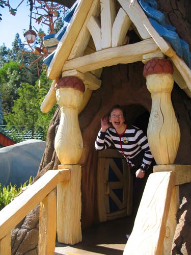 Judy peeks out of Chip and Dale's house in Toontown. I'm not sure it's quite right for a grown woman to be so in to a couple of chipmunks. < previous | next >