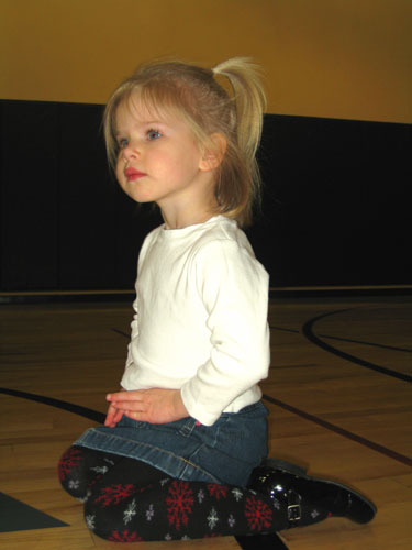 Clara listens intently as she receives instructions for free play time at the Pine Lake Athletic Club. < previous | next >