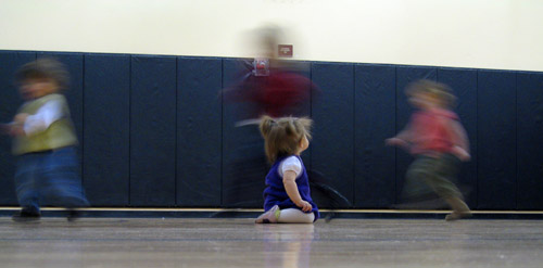 Lilly tries to keep track of the big kids as Leo, Clara, and Tori sprint by.