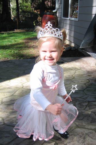 Clara stomps around the patio before her princess-themed birthday party.